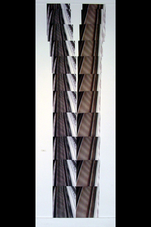 Each panel of "Reflect" is 11"x16". The mirrored mylar reflects and extends the image. Depending on where you stand when viewing this work depends on what you see.