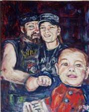 Click photo above to see a larger image. Below is a photo collage I made of a bunch of photos the patron gave to create the painting of 9 people above. To view all the photos I was given click the square to the right. This is "Jodi's Family" created August 2007 and is 24" x 30"