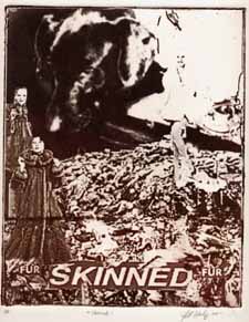 Women in fus are walking across unclear dead bodies of other animals. A dog is in the background. I 'll let you do a little thinking of possible deeper meanings of this creation.